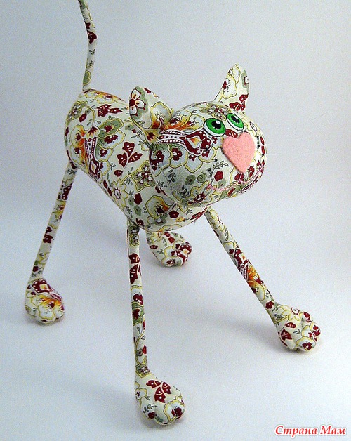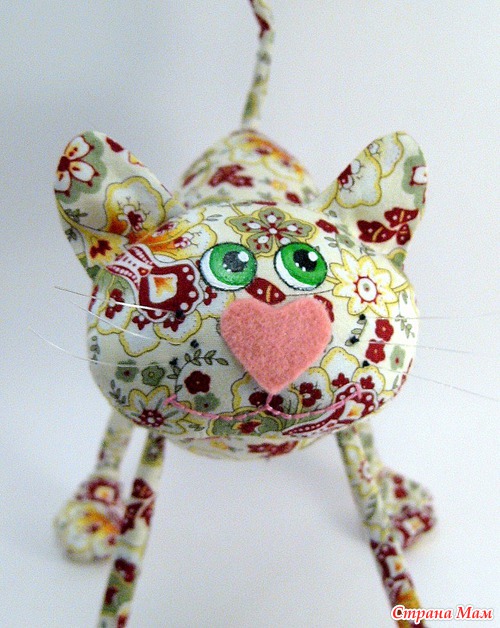 Сшит из 100% хлопка для пэчворка, набит холлофайбером. Глазки нарисованы акриловыми красками по ткани.