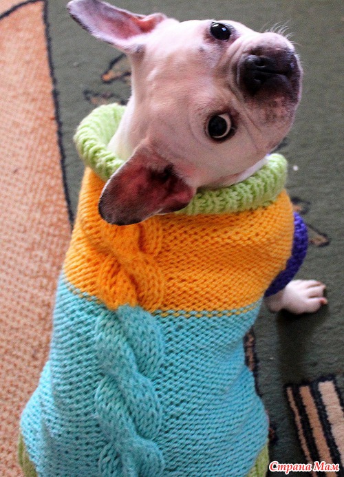 У меня тоже французик живет, да еще и мопсик.. с той же "проблемной" фигурой) вяжу свитерочки (и комбезики) им регланом, сидят классно.. и вяжутся легко.. В моем альбомчике (если интересно) можно посмотреть некоторые из них.. https://www.stranamam.ru/post/4787189/