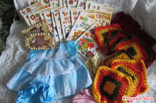 Построева Е. А. г. Орел прислала для МАМ и деток пинеточки, нарядное платьице, множество квадратиков, дав замечетльных панно и целую библиотеку из серии МАСТЕР КЛАСС НА ДОМУ.