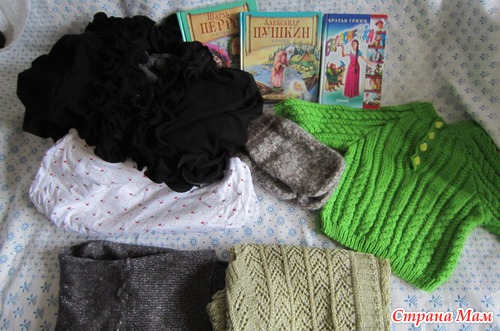 Во второй - одежда для МАМ, мягонький свитерочек для малыша и тоже книги.