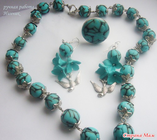 Комплект очень красивый , мне нравится сочетание фурнитуры, бусин и цветочков