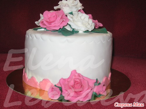 Хорошенькая бочечка очень интересен результат обтяжки такого тортика(давно хочу реализовать этот рецепт, жду подходящего случая, но опасалась, как он дастся под мастику, не будет ли деформироваться из-за наличия безе)...но вроде бы у Вас всё отлично вышло...и ещё вопрос по тортику, песочные коржи печете сразу с белками?как?пропекается?...и тортик с розочками тоже очень хорошо выполнен!!!