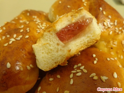 смазываем яйцом и посыпаем сахаром, маком или кунжутом