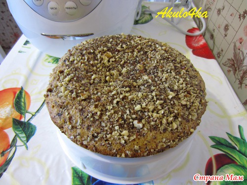 Все перемешиваем, заливаем в мультиварку, посыпаем орешками, ставим режим "выпечка", автоматом выходит 45 минут, но можно смело ставить на 35 (придется следить за временем, потому что в меньшую сторону нельзя поменять), выключить и оставить доходить. Приятного аппетита!
