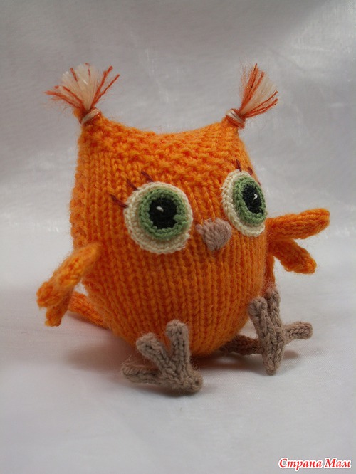 Немного оранжевой для клюва, коричневой для глаз (желтой для темного совенка), черной для глаз, меланжевой для одеяла. Крючок № 5.