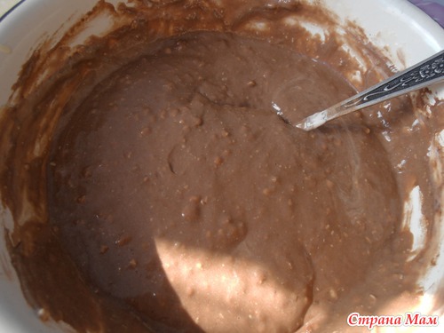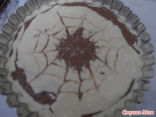 В смазанную маслом форму выливать столовой ложкой поочередно светлое и темное тесто