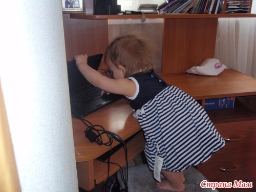 А это девушка моя уже к компьютеру прорвалась, чтобы мама вперед нее в "Страну мам" не залезла!
