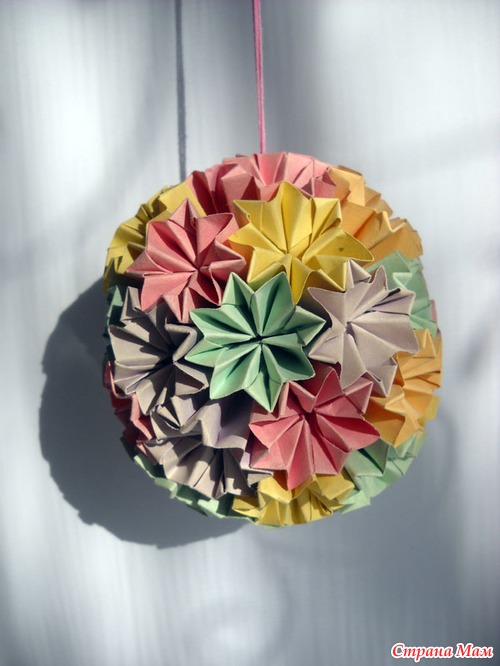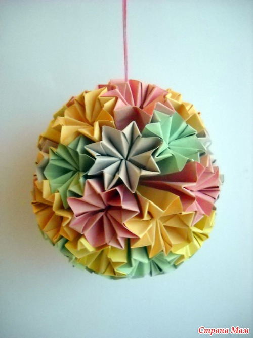 Кусудама "Супершар". Модулей много, делали несколько вечеров, но результат радует. Мы это сделали! Мне помогает мой племянник, или я ему. Уже научился сам и подыскивает интересные модели. Делали модули по этому мастер-классу: Читать полностью