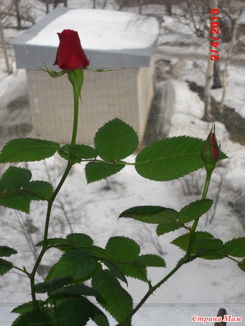 Зимой были только листья. А розочка вообще была в" образе палки" )))