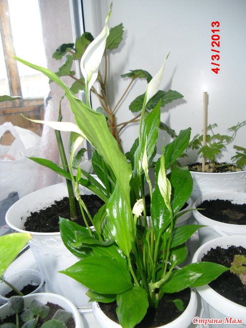 Спатифиллум такой зелёный, насыщенный! А у меня почему-то у него жёлтые листья, никак не позеленеет как следует, хотя тоже цветёт