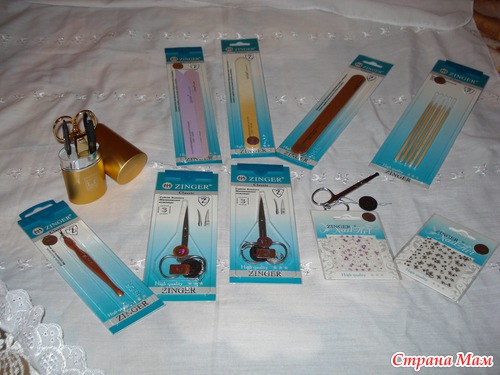 вот ножницы, пилочки, наклейки для ногтей...