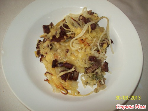 Запеченые спагетти с мясом