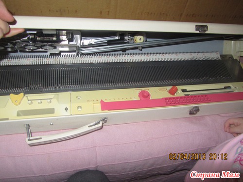 УРА!!!! Она вяжет!!!! Все дело было в прижимной планке,было очень трудно ее найти, я уже думала, что мне ее точно не доложили, я поменяла поролончик, который рассыпался на глазах, смазала машинку, и она стала вязать! Я пока попробовала только основную фонтуру, перфокарты и прочие попробую завтра, а то спать очень хочется.... Спасибо большое ВСЕМ за теплые слова и советы!!!