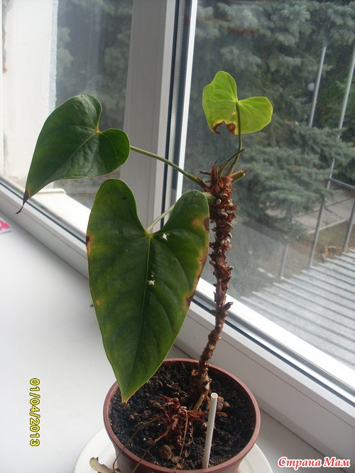 обрезали и тутже сунули в землю, но листья засохли. Их три такие ветки торчали. Другой обрезали и поставили в воду. Вроде как пустил корни. А третий вот торчит и ни туда ни сюда.