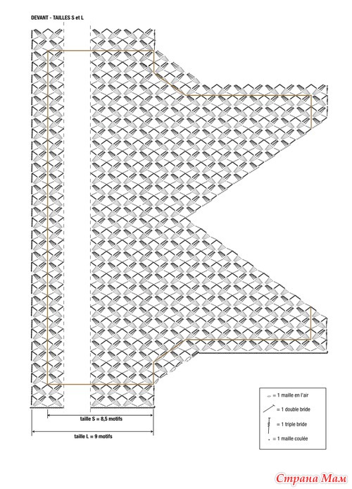 Вот "собрала" схемку. Возможно придется по ходу немного корректировать длину цепочки в.п. или высоту столбиков и правильно определить длину цепочки начального ряда. Образец не провязывала