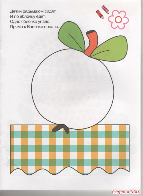 Сегодня склеила 4 листа А4 и нарисовала большое яблоко. немного повазюкал, но точками украшать не стал. Будем еще пробовать