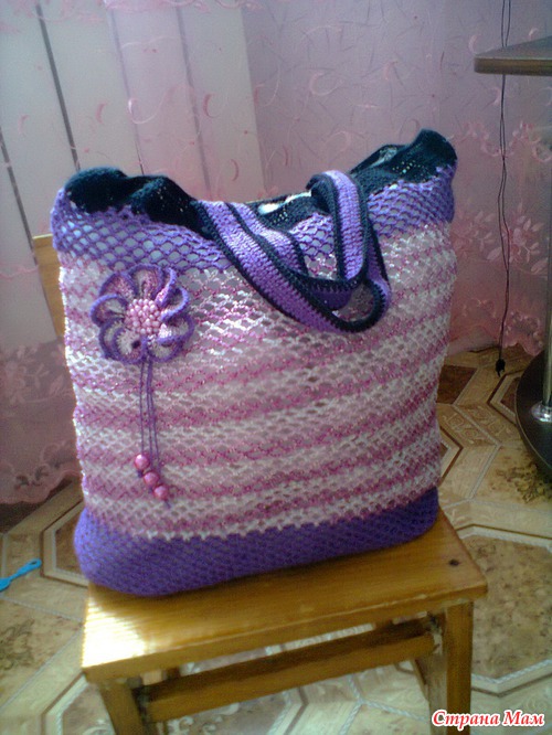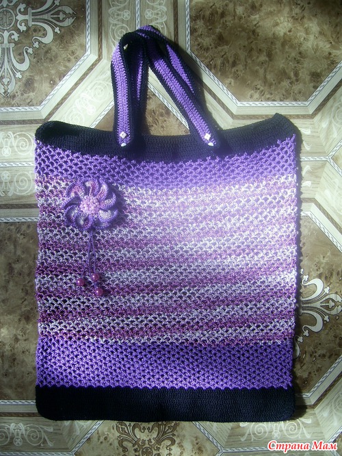 Вот мне всегда кажется что у подобных вязанных сумок самое слабое место ручки. Мне кажется должен быть обвязаный какой нибудь плотный каркас. А без усиления вытянутся и в веревки превратятся. Но может так и задумано