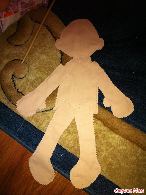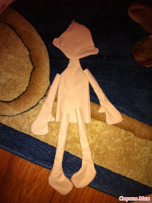 Приступаем... Переносим вырезанную предварительно выкройку на ткань. Я пользуюсь обычным мягким карандашом. Ткань можно и оттонировать кофе, если нет телесной. Берется для этого таже бязь белая. В интернете много рецептов тонировки, можно подсмотреть.
