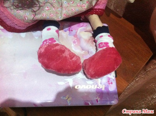 тапочки по выкройке делала и пришивала их прям на ножке, предварительно носочки одев...