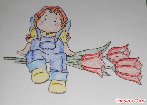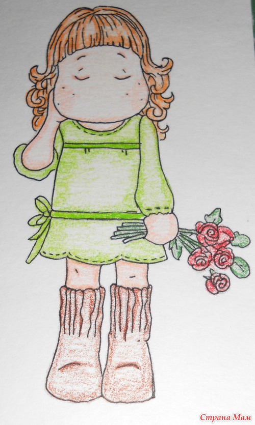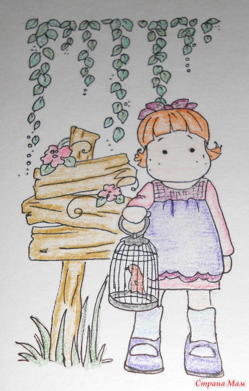Надо было срочно сделать открыточку и под руки попалась отрисовка, которую надо было разукрасить. Ну что я зря заплатила неимоверные деньги за набор акварельных карандашей?