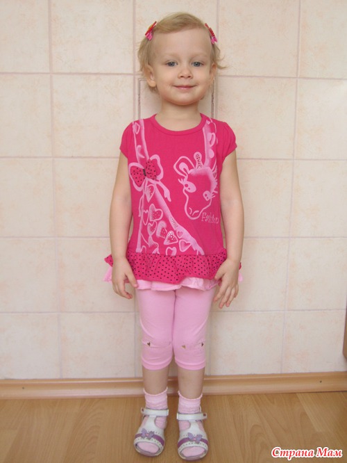 Костюмчик 98 размера, очень понравился, яркий, с бантиком.