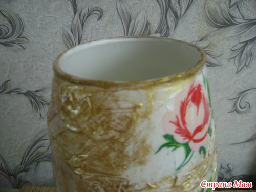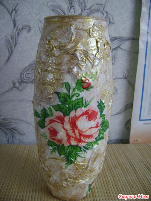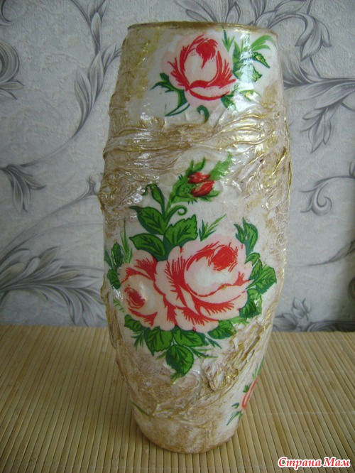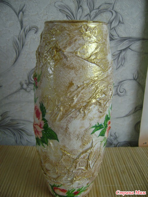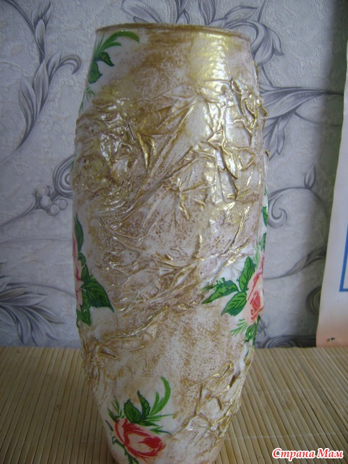 Всем доброго времени суток Спешу похвалить своей новой работой. Эту вазу я декупажила для подруги. Складочки делала из белого слоя 3-х слойной салфетки.