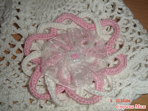 К шляпке вяжется сарафанчик из мотивчиков как цветочек.