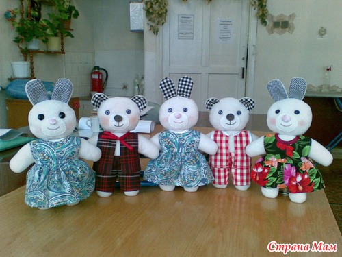 Раскроила зайку от Юфары. Перед глазами пакет с недошитым зайцем Тильда... и парочка зайцев из японского журнала "Ондори". Мыкалась я мыкалась и дошила этих зайцев. Подумалось: "И почему я была от них в таком восторге? Так себе зайцы-мишки..."