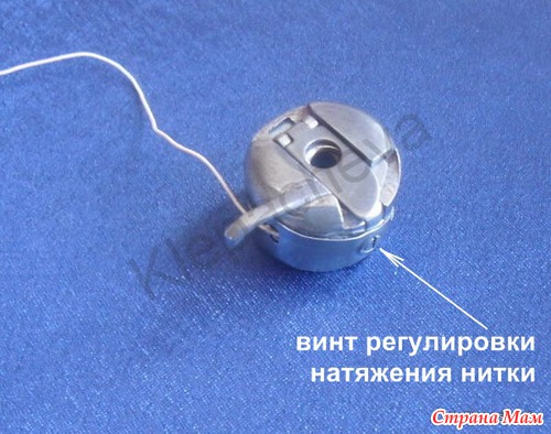 Но это не принципиально, потому что основное растяжение резиновой нитки будет происходить во время ее подачи из шпульного колпачка. Вот это уже важно! Необходимо отрегулировать натяжение нижней нитки. Регулировка осуществляется ослаблением винта