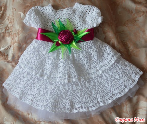 Мария Здравствуйте я автор этого платья и вязала его по ссылке выше . Кокетку вязала от горла набирала 110 петель ( по 6 веерочков на перед и спинку и по 5 на рукава (1 веер =5 петлям воздушным)) и на рукавах делала прибавления чтобы пышные были.Надеюсь помогла