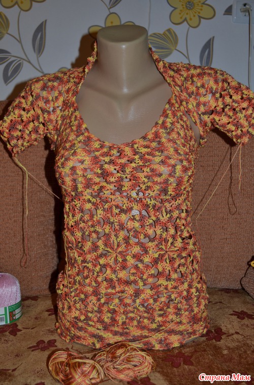 кстати - Саша в майке и болерошке, майка готова - - а вот болерошка еще в процесе - вяжу ее в транспорте - она маленькая - удобно