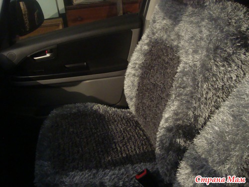 Ну вот наконец то и завершается работа над чехлами, связались вроде бы и быстро, но проблема с нехваткой пряжи заставила ждать, но практически уже все готово. Расход пряжи 15мотков фурланы и 20мотков травы, но травы немного не хватило, потому чуток застопарилась, ушло много, потому что передние сиденья обвязаны полностью, сзади как положено 2 кармана. Фото конечно не профессиональные, оч. сложно фотать да еще в гараже и близко, но уж что получилось.