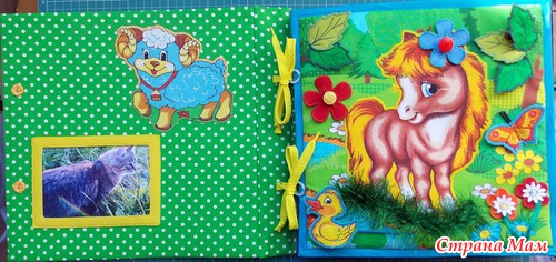 Большая яркая книга из 6 страниц ( 30*30) с различными застежками, на внутреннем развороте обложки два кармашка под фото. Более подробно у меня на страничке. Заходите в гости! Читать полностью