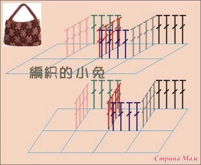 Каждая клеточка - опредленный цвет. Вывязываем на филейной сетке столбики зигзагами определенного цвета, как на нижнем рисунке. Похоже на вышивку крестиком.