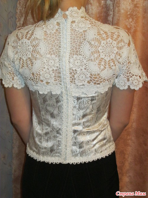 Вот такие вещи связались у меня в перерывах между работой, болезнью моей дочки и нашим нахождением в больнице. Не судите строго, ирландку пробовала вязать впервые, корсаж шила тоже в первый раз. Вот, что получилось.