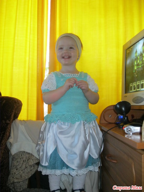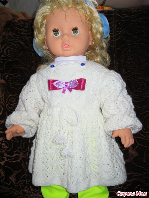 А у меня до куклы руки не доходят, тоже платишко связать нужно.