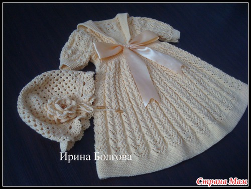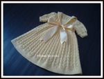 Выполнить плечевые швы, затем вшить рукава в проймы. Выполнить боковые швы и швы рукавов. Отрезать эластичную резинку длиной, равной обхвату талии ребенка, и сшить в кольцо. Закрепить с изн. стороны резинки по талии, и пришить резинку - подклад поверх эластичной резинки. Пришить воротник к горловине, совместив концы по середине переда. Завязать в этой точке бант из атласной ленты. Пришить правый край вставки. С другой стороны вставки пришить кнопки, для застегивания. Не отпаривать. Спрятать все кончики нитей.
