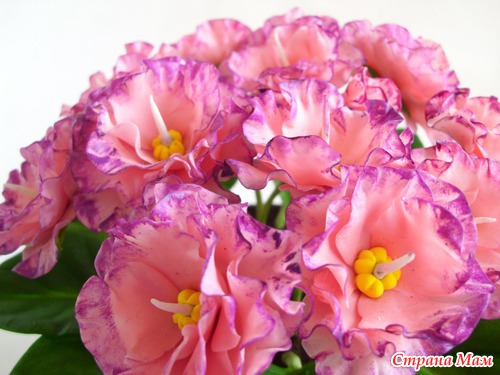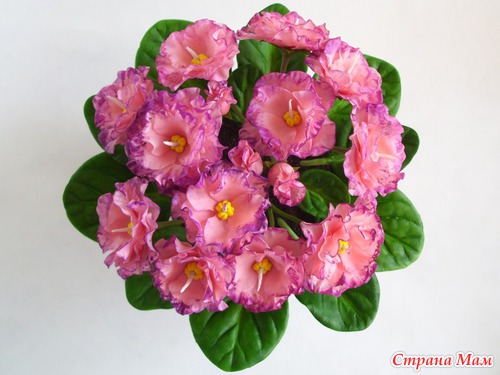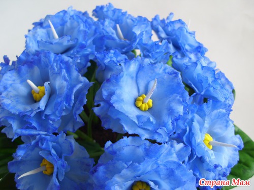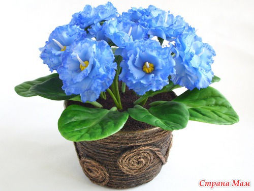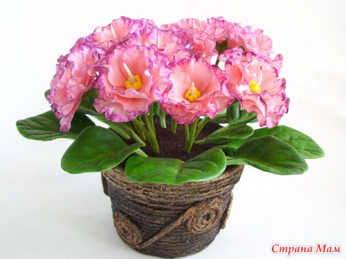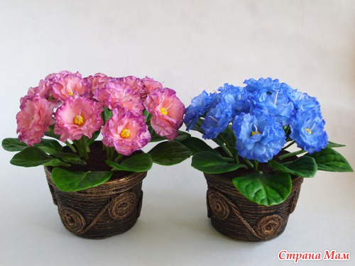 У меня в который раз фиалковое настроение. Насмотрелась на натуральную фактуру листьев у других мастериц и приобрела вайнеры. Не могу нарадоваться, листики "стряпаются" быстро, ровно и красиво. Что я не стала делать, так это покрывать листья ворсом. Попробовала на паре листиков флок белого цвета, не понравилось, даже если сверху зелёной краской пройтись, как-то неряшливо выглядит.