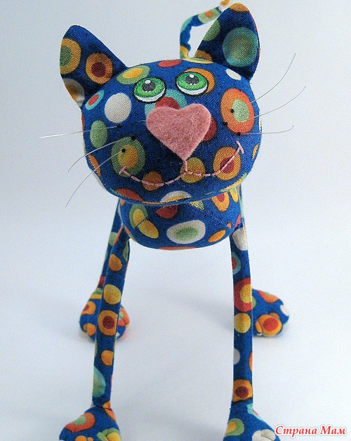 Сшит из 100% хлопка для пэчворка, набит холлофайбером. Глазки нарисованы акриловыми красками по ткани.