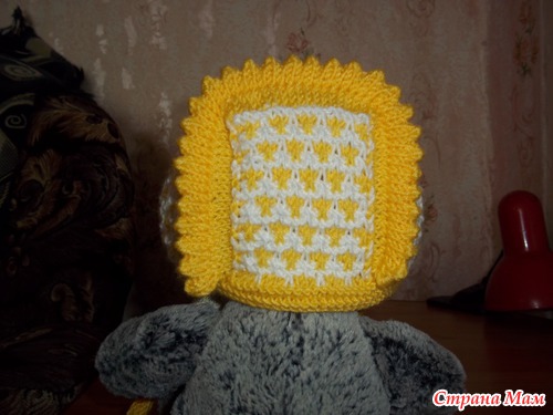 Вид сбоку. Здесь мой маленький помощник пытается незаметно стащить и примерить чепчик