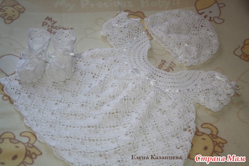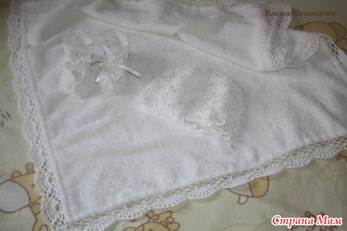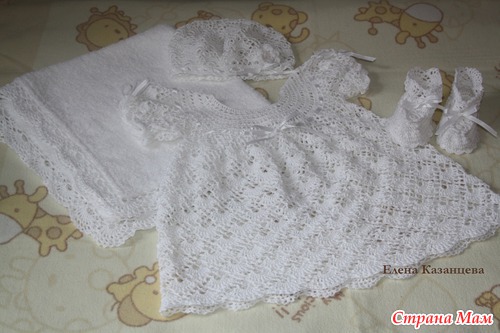Сегодня закончила работу над крестильным комплектом! Пряжа Сосо, крючок №1,75, №2, №2,5, р-р 74-80, расход 5 мотков. Крыжма из махрового полотна, р-р 60*60см + обвязка. Украшен атласной лентой, чешским бисером и пайетками. Спасибо всем. кто заглянул на страничку и проявил интерес к работе Читать полностью