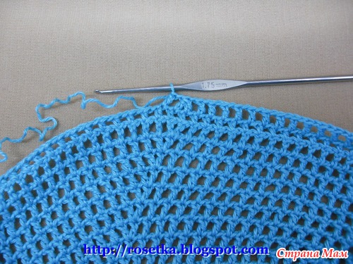 По линии кепки вяжем столбиками без накида (Сбн) в каждую петлю предыдущего ряда.