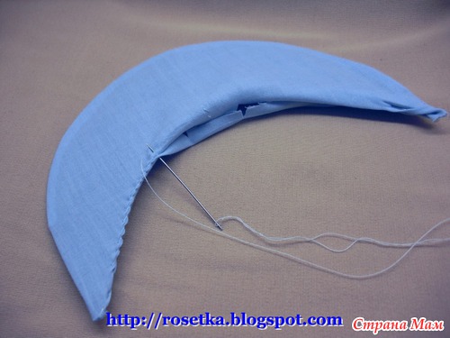По внутренней части тоже делаем несколько надрезов и, подворачивая внутрь края, сшиваем швом «через край», обтягивая тем самым козырек.