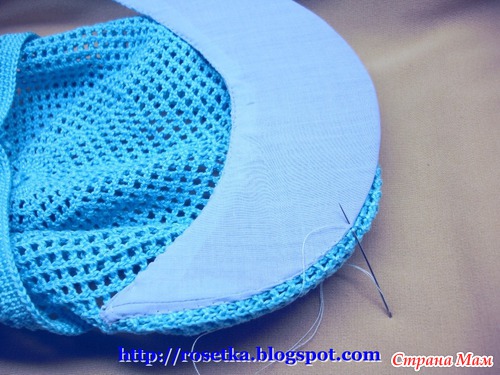 Осталось пришить внутреннюю, вогнутую часть козырька к кепке.