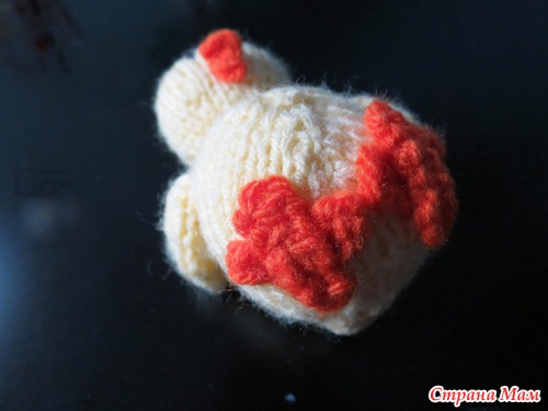 Можно украсить его по своему усмотрению, как и скорлупу можно связать пряжей разного цвета, если цыплята в скорлупе предназначены для украшения пасхального стола.