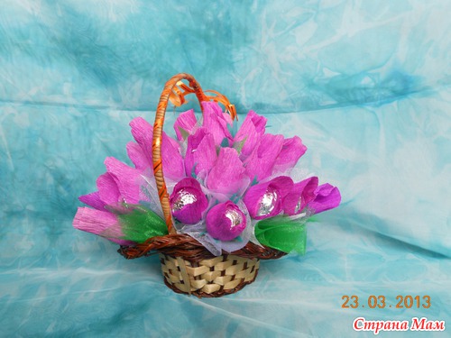 Тэги: розы в корзине, роза из конфет, букет, букет из конфет