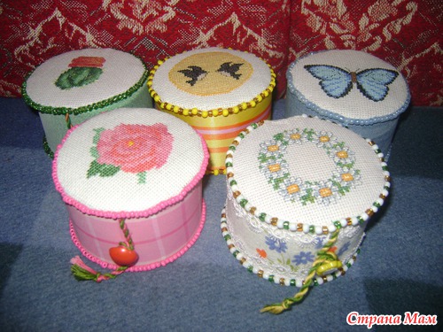Наваяла я вот таких шкатулочек из бобин от скотча