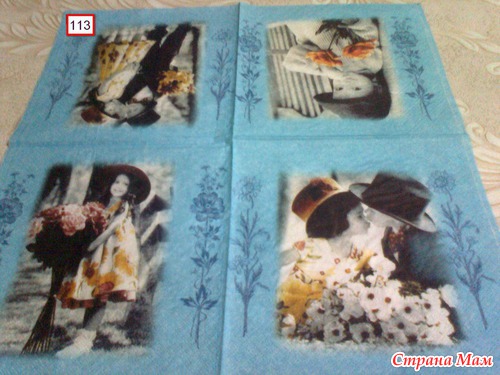 Вначале собирала, потому что красивые (это я про цветы). Потом появился спортивный интерес к конкретной тематике (домашняя живность). Сейчас меня заинтересовали "фоновые" салфетки. Так коллекция и пополняется. Конечно, я слукавила, сказав, что вообще не занимаюсь декупажем. У меня есть несколько работ, даже делала на заказ. Но вот интереса к этому творчеству пока нет. Да я много чего коллекционирую: у меня есть хорошая подборка монет, бумажных денег, значков, марок. Сейчас делаю серию карточек АТС по теме "Марки". Но на эти карточки марки идут погашенные. Вот как то так