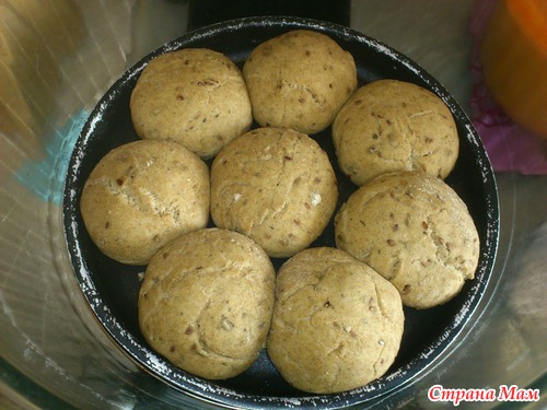 Рецептуру любимого хлеба я не знаю, поэтому решила действовать по наитию. Получились очень вкусные ржаные булочки с льняным семенем и отрубями, пои "первенцы". Это до расстойки: