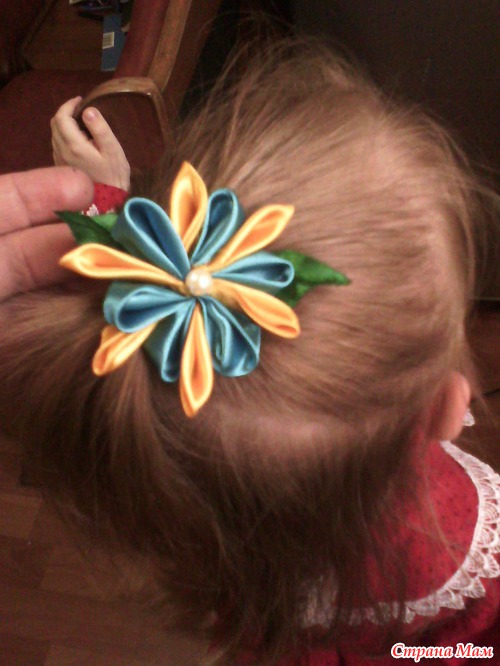 . Второй бантик сделать не получилось - было всего 2 одинаковые бусины, и одну из них доча от нетерпения уронила, я так и не нашла((((